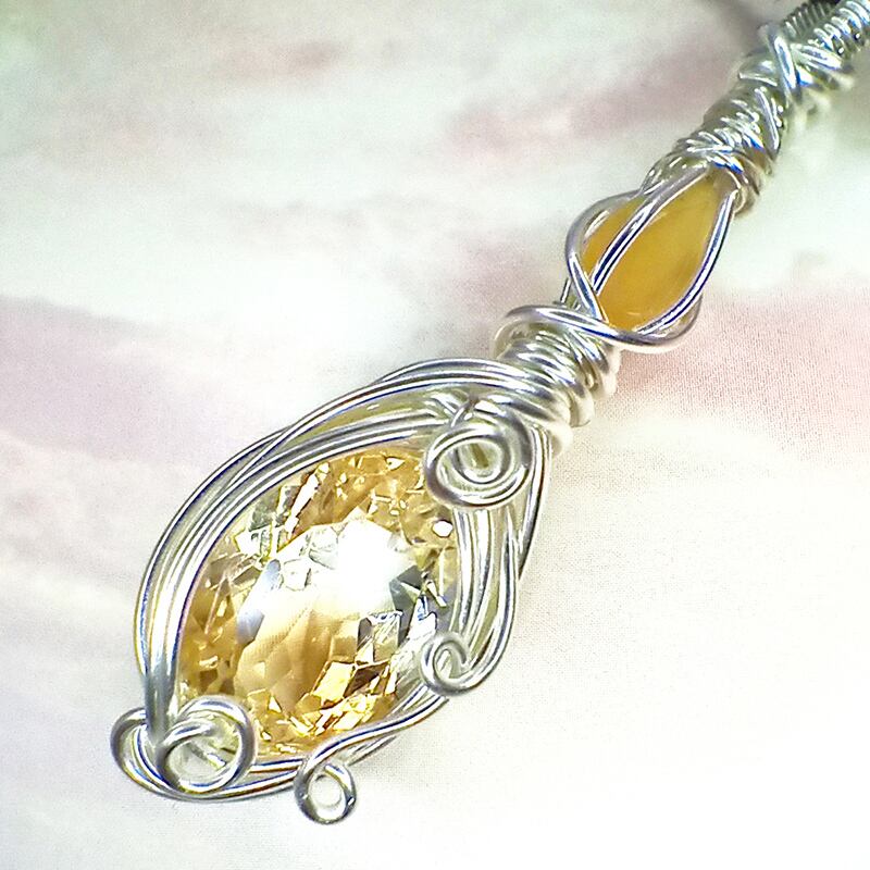 厳選された美しい天然石シトリンとイエローオパールを使用。